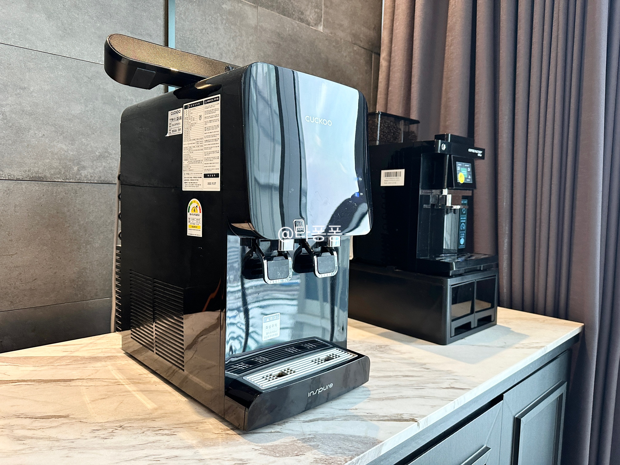 앞에는 커피머신이 있어서 커피를 뽑아 먹을 수 있었는데, 원두 맛은 그뤠잇.
